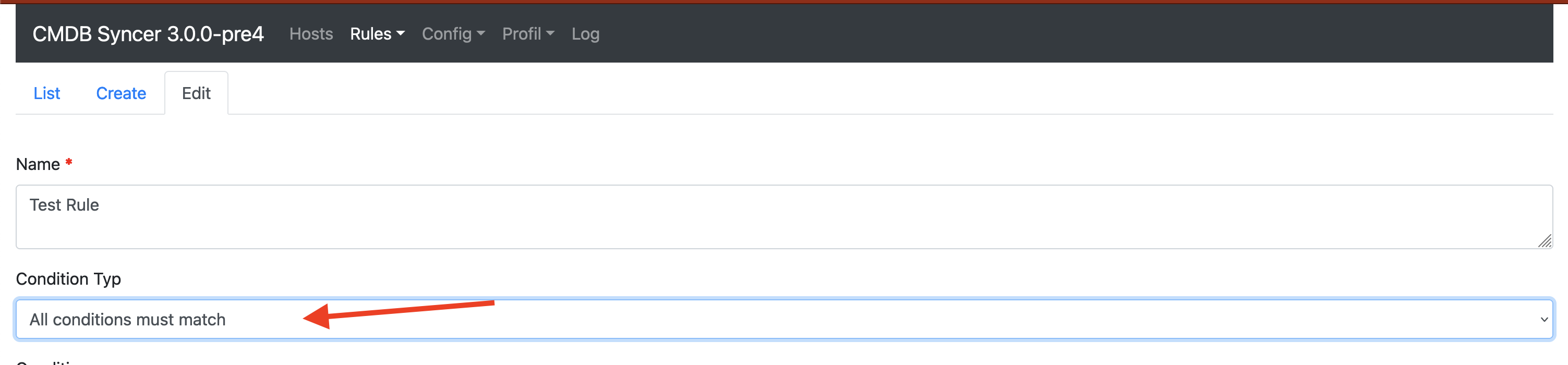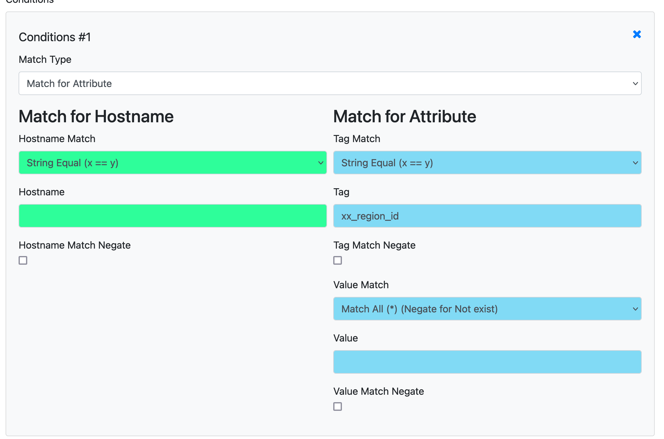Every Rule has a Condition. And you have the power to match everything. Hosts or attributes with different options. Make sure to set for the Condition, if an Attribute or a Host match is required. Sadly, the Frontend always shows all input fields due to current limitations. Also, it's required to set how the conditions should be applied.