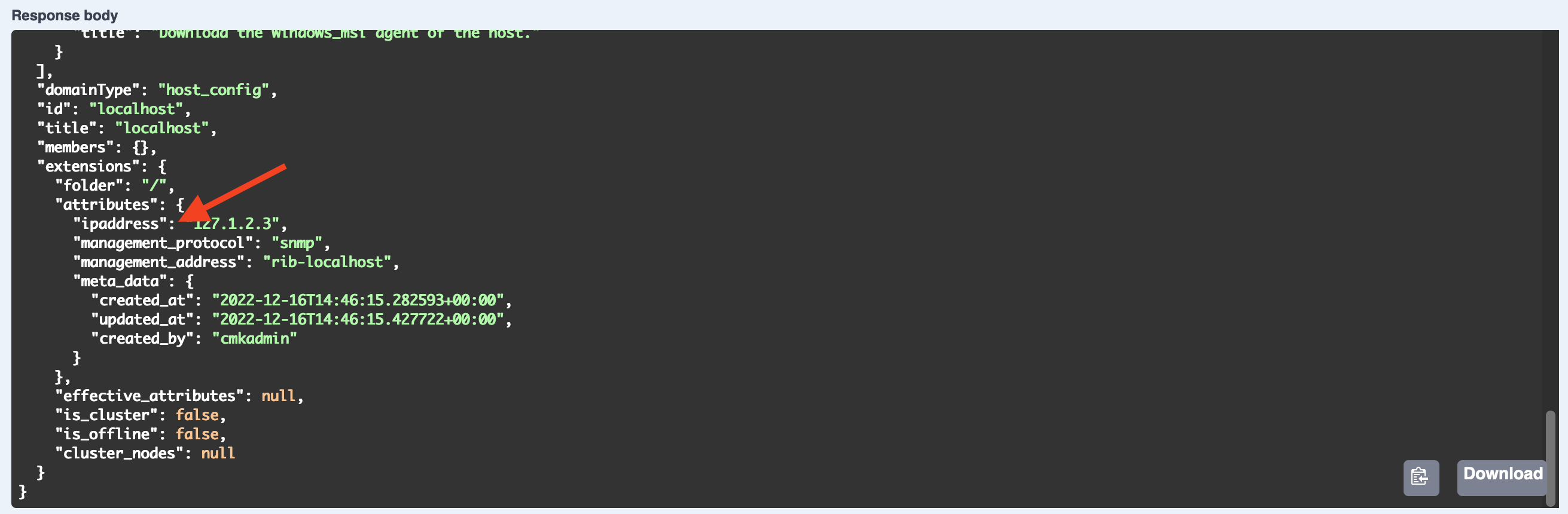The Easy way to find out this Attribute's Name, is to check with the Swagger Documentation provided in Checkmk.